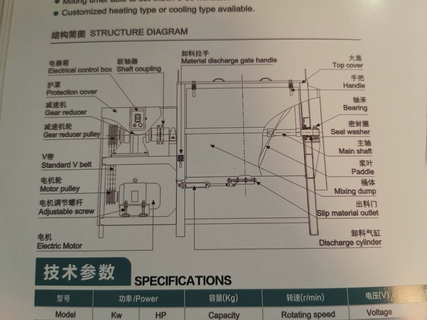 1、料桶及槳葉全不銹鋼制造,清洗容易、避免銹蝕;